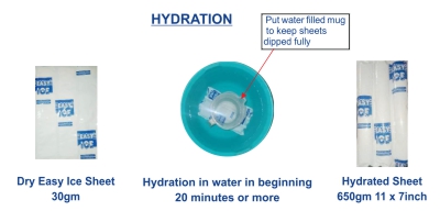 ⇒ Easy Ice sheets are supplied in dry condition 30gms each. The first step is Hydration